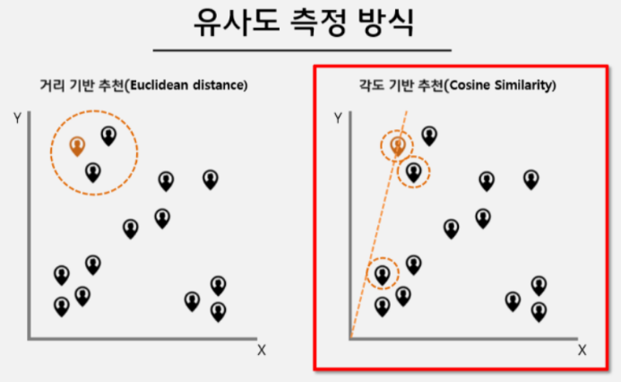 · 벡터값의 차이가 크지 않다면, 거리 기반 유사도(유클리디안 유사도)
