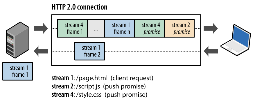 HTTP/2의 새 바이너리 프레이밍 계층은 이러한 제한을 없애주고 전체 요청 및 응답 다중화를 지원한다. 이를 위해 클라이언트와 서버가 HTTP 메시지를 독립된 프레임으로 세분화하고, 이 프레임을 끼워넣은(인터리빙)다음, 다른 쪽에서 다시 조립하도록 허용한다.
