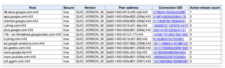 QUIC은 TLS 암호화를 기본적으로 적용하고 있다. 과거 SPDY와 마찬가지로 구글에서 설계한 네트워크 프로토콜은 기본적으로 암호화를 적용하고 있고, 서버의 포트도 디폴트가 443 UDP 포트를 사용하고 있다.