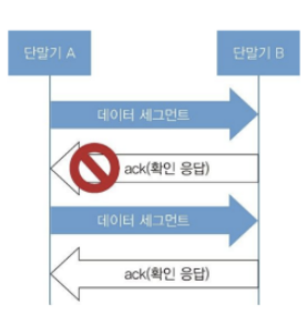 송신 측에서는 ACK가 올 때까지 기다리지만, ACK가 결국 오지 않으면 다시 데이터를 보내게 된다.
