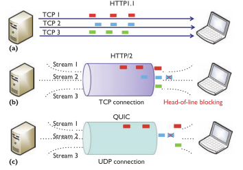 위 그림을 보면, QUIC은 하나의 UDP Connection 안에서 데이터를 동시에 전송하는 스트림을 독립적으로 다중화하여 스트림 중 하나의 데이터가 손실이 발생했을 때, 다른 스트림의 데이터 전달을 차단하지 않아 HoL Blocking을 방지할 수 있다.