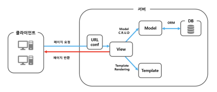 장고 프레임워크에서 View는 Template, Controller는 View라고 표현하며, MVC 대신 MVT패턴이라고 부른다.