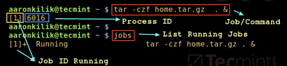 [1]은 작업 번호(job number), 6016은 pid(process ID)
