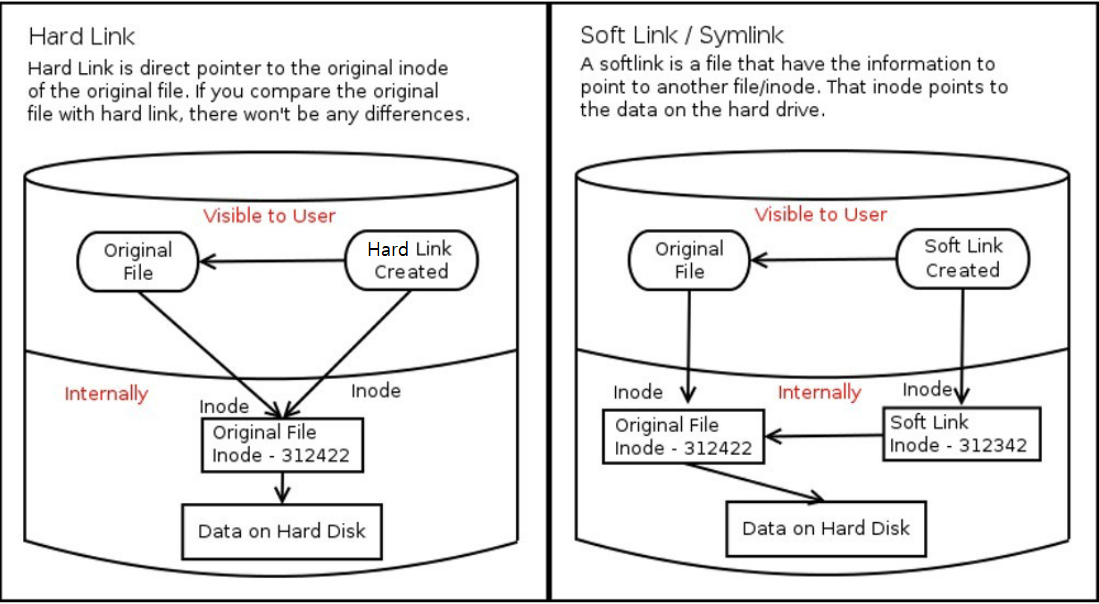 원본 파일을 가르키는 심볼릭 링크와 다르게 하드 링크는 원본 파일과 동일한 Inode를 가리키는 파일이다. 하드 링크는 원본 파일과 파일명만 다를 뿐, 원본 파일과 같은 Inode를 참조하고 있기 때문에 원본 파일이 삭제 되더라도 여전히 원본과 같은 데이터를 가리킨다. 그리고 생성된 하드 링크는 원본 파일과 동일한 물리적 데이터를 가리키고 있으므로, 하드 링크 파일을 수정하면 원본 파일 또한 동일하게 수정된다.