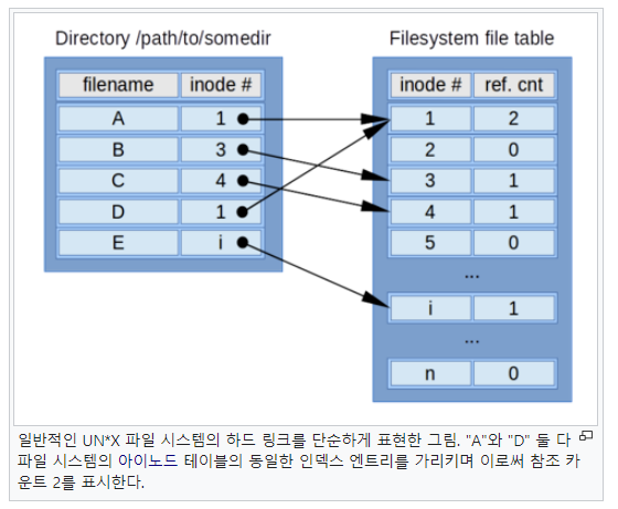 하드 링크(동일한 파일에 두 개 이상의 이름을 짓는 것)