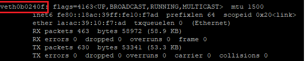 컨테이너를 실행하면 생성되는 컨테이너의 가상 NIC이다. veth + 난수 형태로 컨테이너 입장에서는 가상 NIC를 eth0이라고 인식한다. 도커에서 NIC를 eth0으로 표현한 이유는 보통 리눅스에서 랜카드가 하나인 경우 장치 이름을 eth0으로 설정하며, 만약 두개를 장착하면 두번째 랜카드는 eth1로 명명하게 된다.