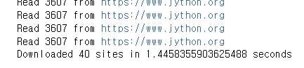 threading 모듈을 추가하려면, 전체 구조는 같지만 약간의 변경이 필요하다. download_all_sites() 함수가 사이트 목록에 있는 사이트 하나마다 download_site 함수를 실행하는 대신, 더 복잡한 구조로 바뀌었다.